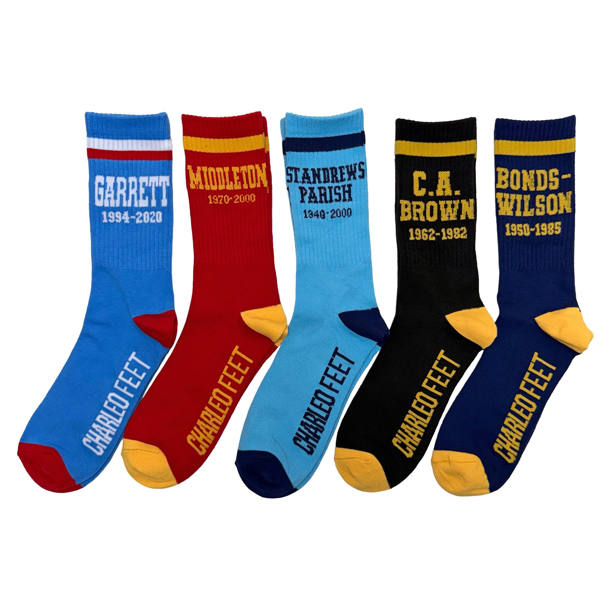 Step into history with the Legacy Set Heritage Socks, created to honor the iconic colors, pride, and spirit of Charleston’s former high schools. Each pair is crafted in a premium athletic style with a cushioned footbed, reinforced heel and toe, and classic varsity stripes — perfect for everyday wear or for collectors who want to keep these legacies alive.
