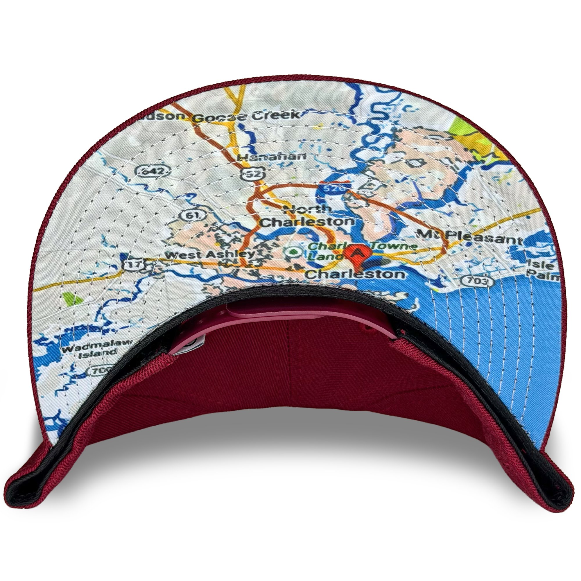 Our original signature snapback featuring the greater Charleston map under-brim print. Clean, bold, and unmistakably Charleston, this is the hat that made Charleo® a staple in the 843.