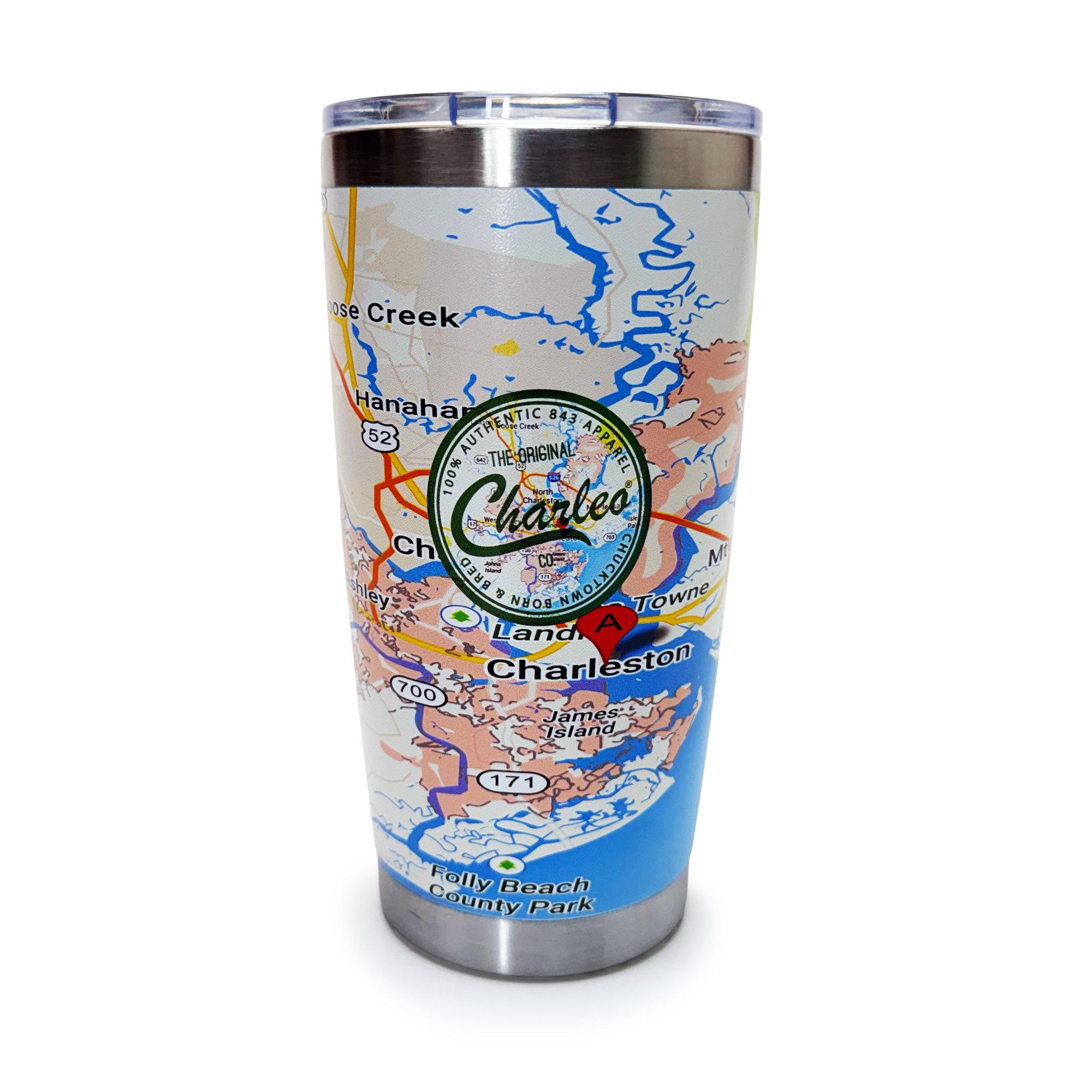 Our insulated stainless-steel Map Cup™ features the full Charleston map wrap you already know and love. Keeps drinks hot or cold for hours while repping the 843 everywhere you go.